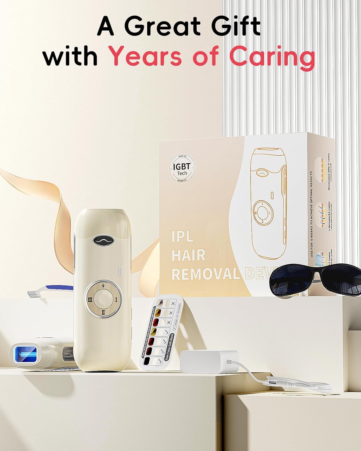 - 𝐏𝐚𝐢𝐧𝐥𝐞𝐬𝐬 𝐇𝐚𝐢𝐫 𝐑𝐞𝐦𝐨𝐯𝐚𝐥 𝐰𝐢𝐭𝐡 𝐈𝐆𝐁𝐓: Achieve the smooth, hairless skin of without the pain of hair removal or the hassle of frequent shaving. The IPL hair remover for women uses advanced IGBT 4.0 technology to provide gentle and painless hair removal. It fits perfectly into your daily skincare routine.
