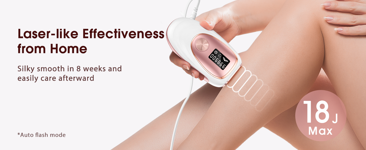 Libérez vos mains et obtenez une épilation complète en seulement 12 minutes sur le maillot, les aisselles, les jambes, le dos, la poitrine et d'autres parties du corps (ne convient pas aux sourcils ni aux tatouages). Le mode Auto-Glide avec flash accéléré permet une épilation à domicile rapide, facile et sûre.