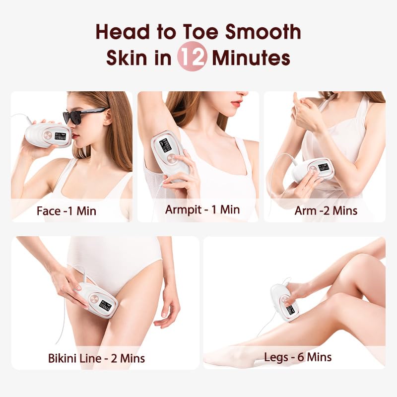 Libérez vos mains et obtenez une épilation complète en seulement 12 minutes sur le maillot, les aisselles, les jambes, le dos, la poitrine et d'autres parties du corps (ne convient pas aux sourcils ni aux tatouages). Le mode Auto-Glide avec flash accéléré permet une épilation à domicile rapide, facile et sûre.